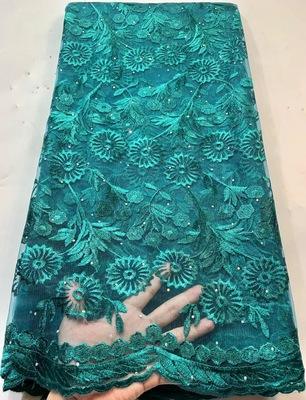 Ласерска исечена африканска полиестерска чипка ткаенина со sequins Нигерија ленти погодни за модерна облека и декорација