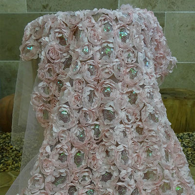 3D роза свадбена ткаенина цвеќиња тепих мек невестински фустан од чипка од чипка со чипка со меки пердуви, спарени со сјајни sequins, цвеќињата се тродимензионални и полни, со нежен и луксузен допир. Погоден е за венчаници на невести, вечерни наметки, превез и свадбени украси, додавајќи романтичен и елегантен допир. Со високо еластичен и дишениот дизајн, може да се намали по потреба и е идеален избор за прилагодени свадбени материјали.