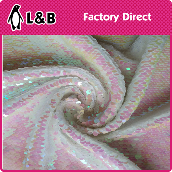 Висококвалитетна модна ткаенина од полиестерски секвенци со висококвалитетна полиестерска база и сјајна декорација на секвенци, е лесна во текстурата и еластична. Погоден е за правење луксузни предмети како што се вечерни наметки, сценски носии и модерни чанти. Тој нуди најразлични опции во боја за да ги задоволи потребите на високо прилагодување.