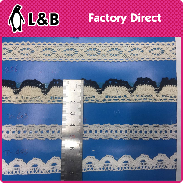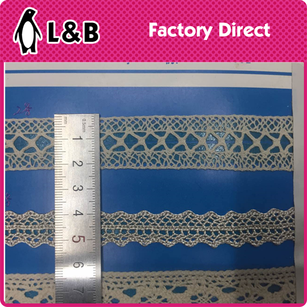 Висококвалитетна чипка на Guipure Trim ефтина 100% памучна чипка направена од 100% чист памук, таа е мека, пријателска за кожата и има добра дишеност. Guipure Clace (со издвоена техника на вез) е исклучително дизајнирана и има силен тродимензионален ефект, што го прави погоден за високо-облека, венчаници, долна облека и домашна декорација. Цената е поволна, и со квалитетни и со перформанси на трошоците. Поддржано е прилагодување на ширина и шема.
