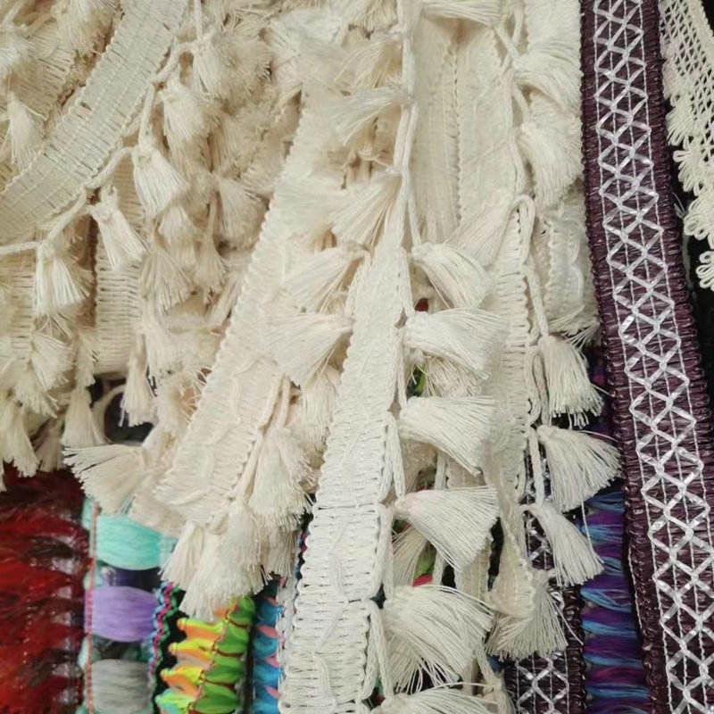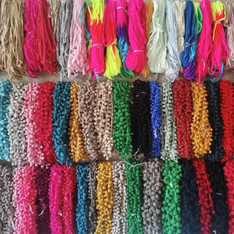 Мулти бои топка чипка декоративен дизајн на тасели пом пом трим изработен од висококвалитетен памучен нишка/полиестерски материјал, со дизајн на пом и тасели, има богати и живи бои. Погоден е за детска облека, предмети за домаќинства, ракотворби и фестивалски украси. Има мек допир, е отпорен на абење и не испушта топки.