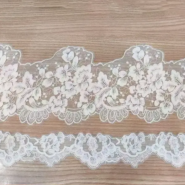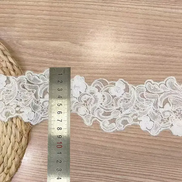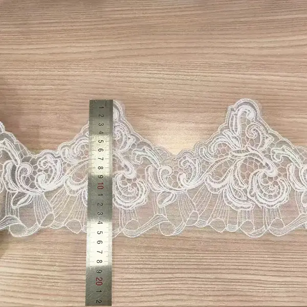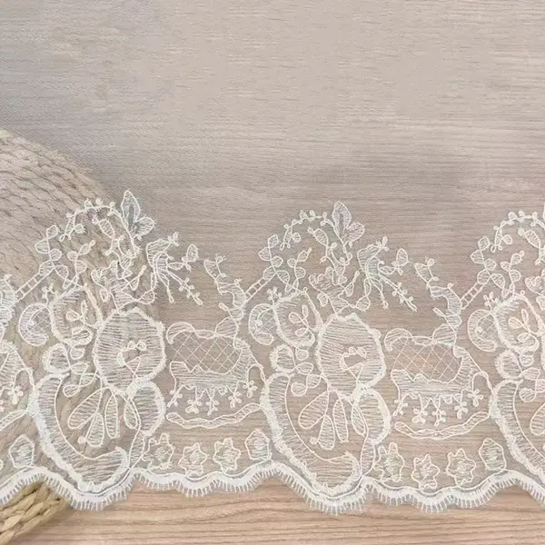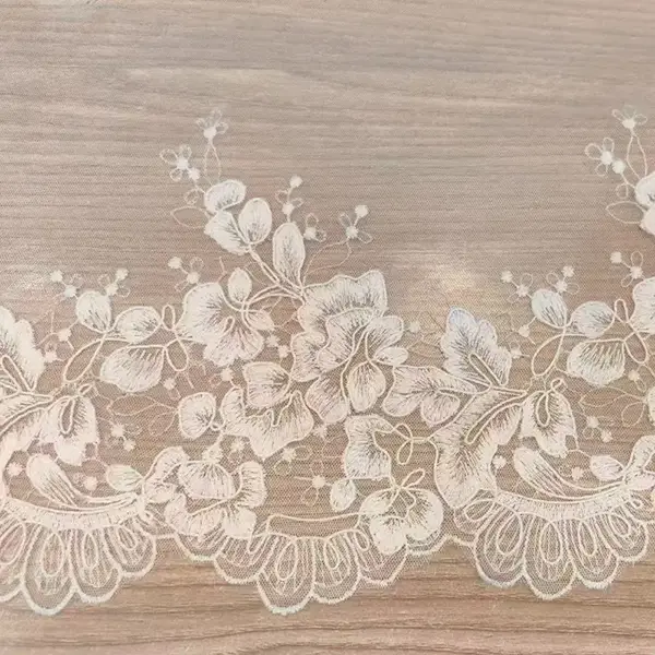 Класичен исклучителен мрежен полиестер извезена чипка за женска облека со сложени везени цветни обрасци, совршени за женска формална облека, невестинска мода и нежни преклопувања. Лесната, но сепак издржлива ткаенина нуди грациозна драперија со безвременска софистицираност. Идеално за фустани, ракави, превез и долна облека. Достапно во класичен слонова коска, црна и бела боја. Препорачано миење на рацете или нежен машински циклус. Премиум избор за дизајни за мода и облека за специјални прилики. Продадено од дворот кај добавувачите на специјализирани ткаенини.